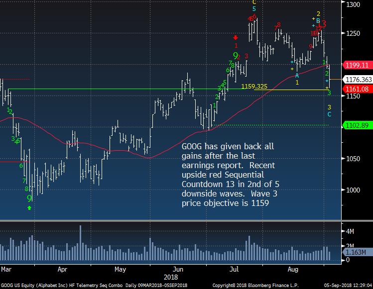 Updated: 9/4/18 WEEKLY UPSIDE 13: AWR, CA, DHR, DRI, FOR, GRMN, LLL, MA, MANH, NDSN, NFLX, PTC, SHOO, SIVB, STI, TDC, TXRH, WRLD WEEKLY DOWNSIDE 13: CHS
