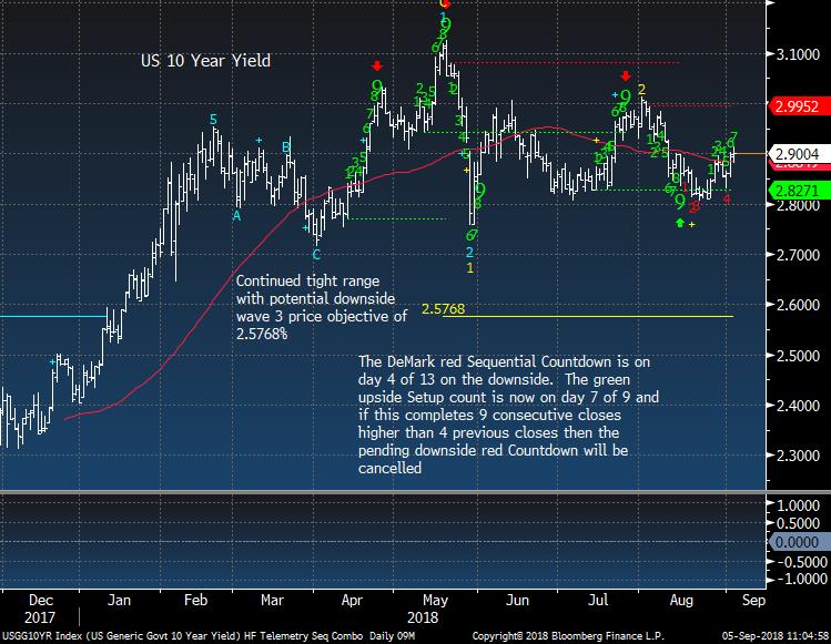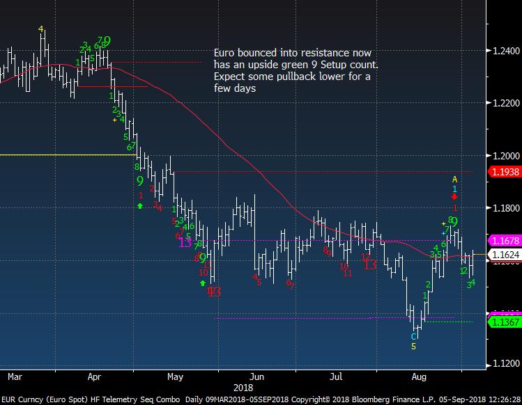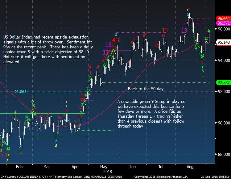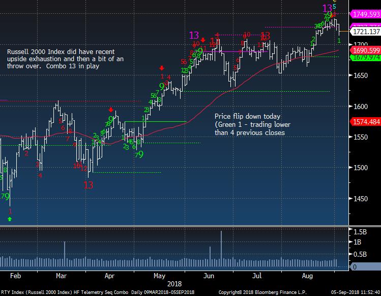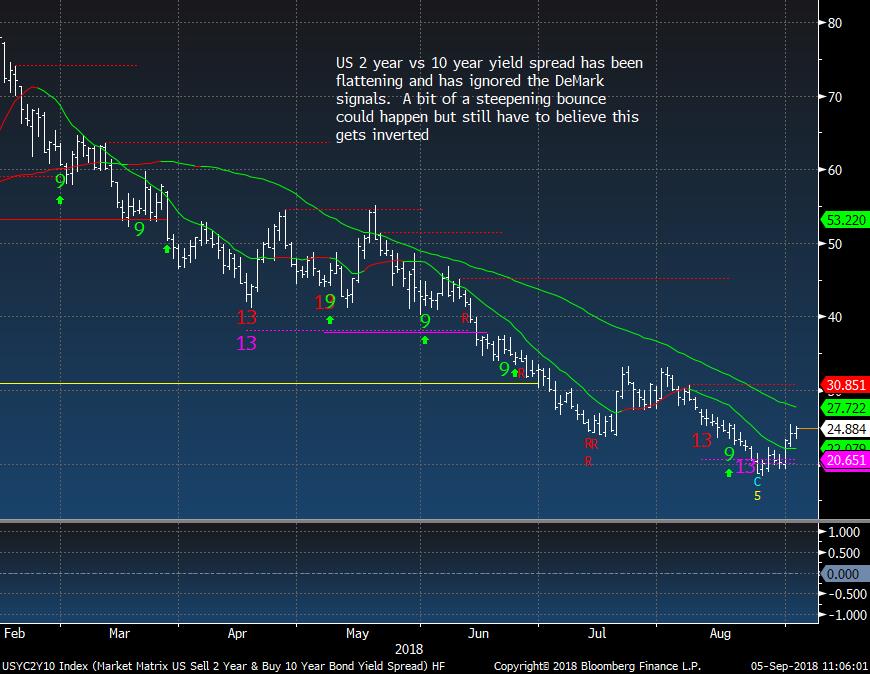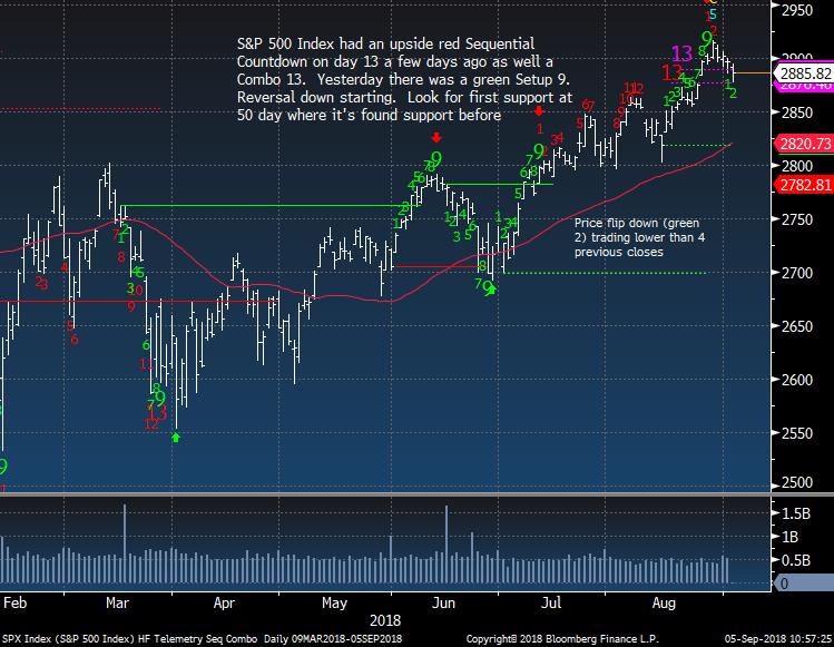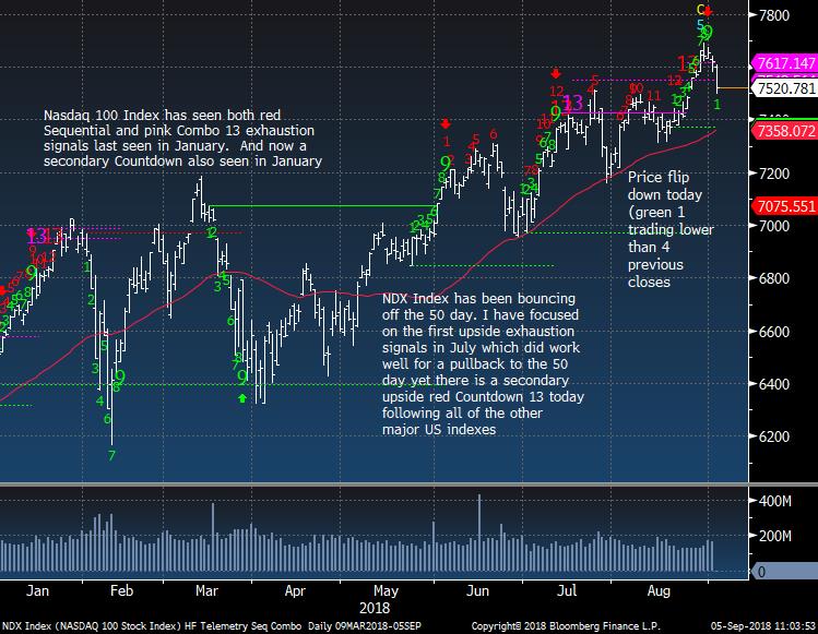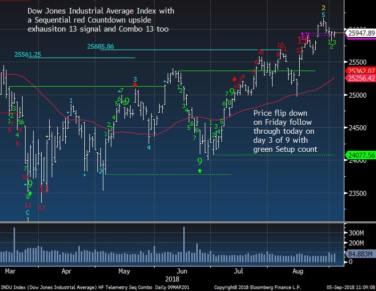 - US Markets - Sentiment remains elevated, starting to see slight turn lower after DeMark signals on top