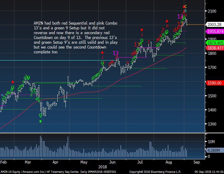 Daily/Weekly DeMark upside/downside exhaustion signals (Sequential) weekly updated on Monday's and monthly on the first day of the new month. Price flips occur when a stock closes higher/lower than four previous closes and increases conviction of a price turn.