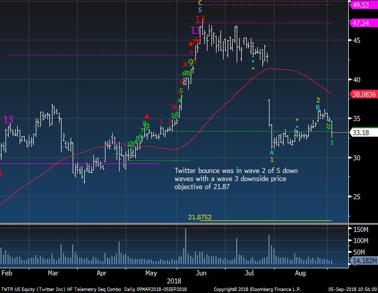 Twitter bounced and is now trading lower and that's after the big drop after earnings. This should work lower and under 30 is where stops will trigger