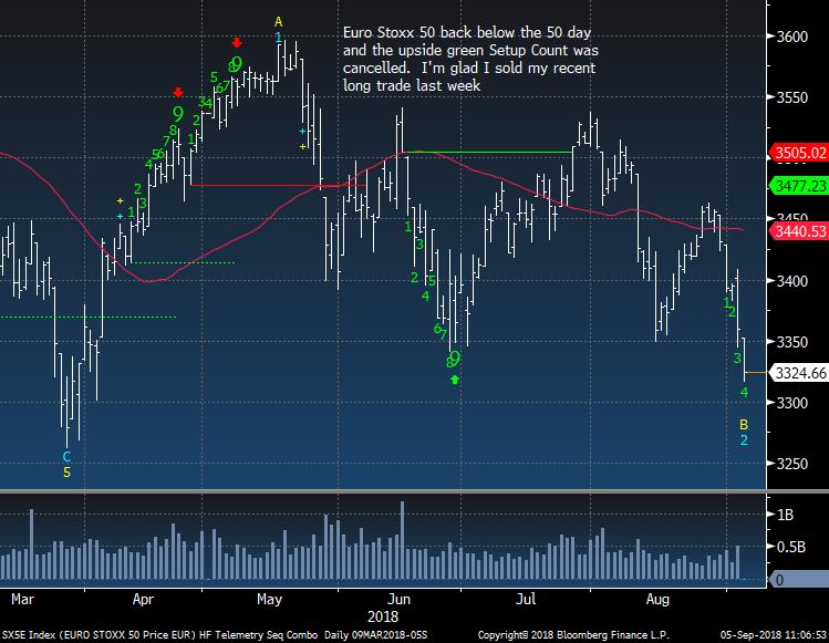 Euro Stoxx 50 just looks terrible and some of the contagion from Emerging Markets will hit Europe first and then the US