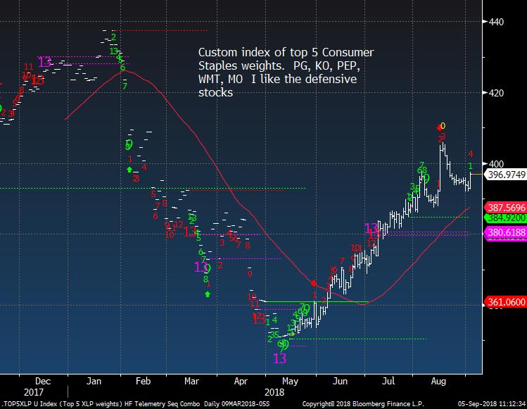 Yesterday I bought back Consumer Staples ETF and Coke. Here is the custom chart of the top 5 XLP weights. I like this sector long
