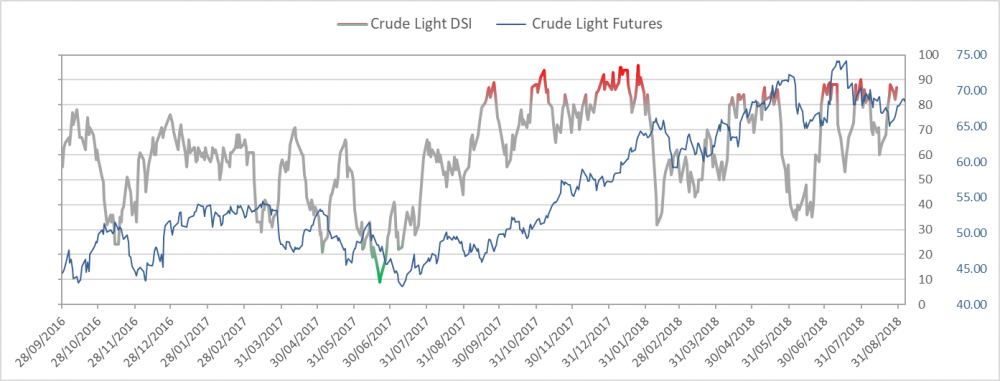 Crude bullish sentiment is at 82% still extreme but off the highs of 90% a few days ago