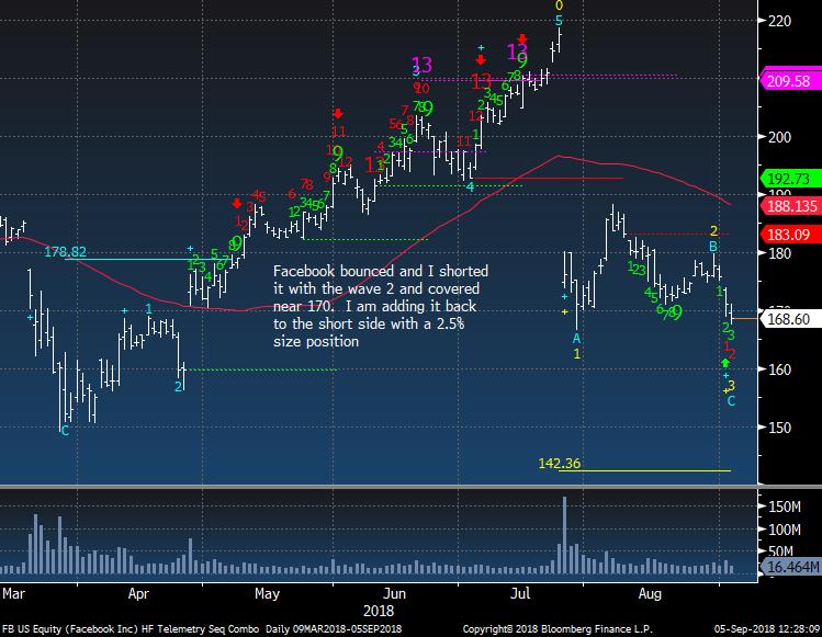 Trade Ideas - removed AMAT long (chips look weak), Added FB short 2.5%,